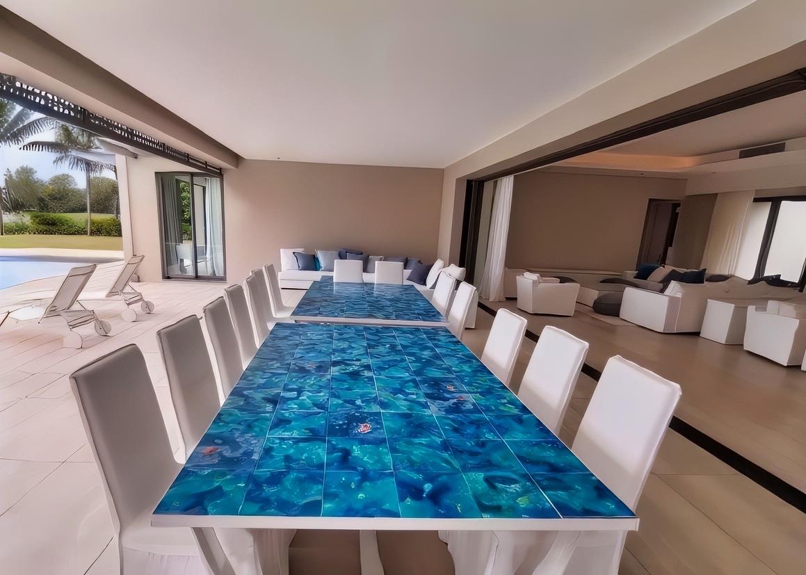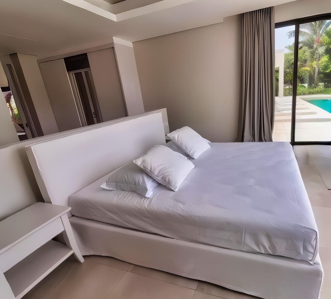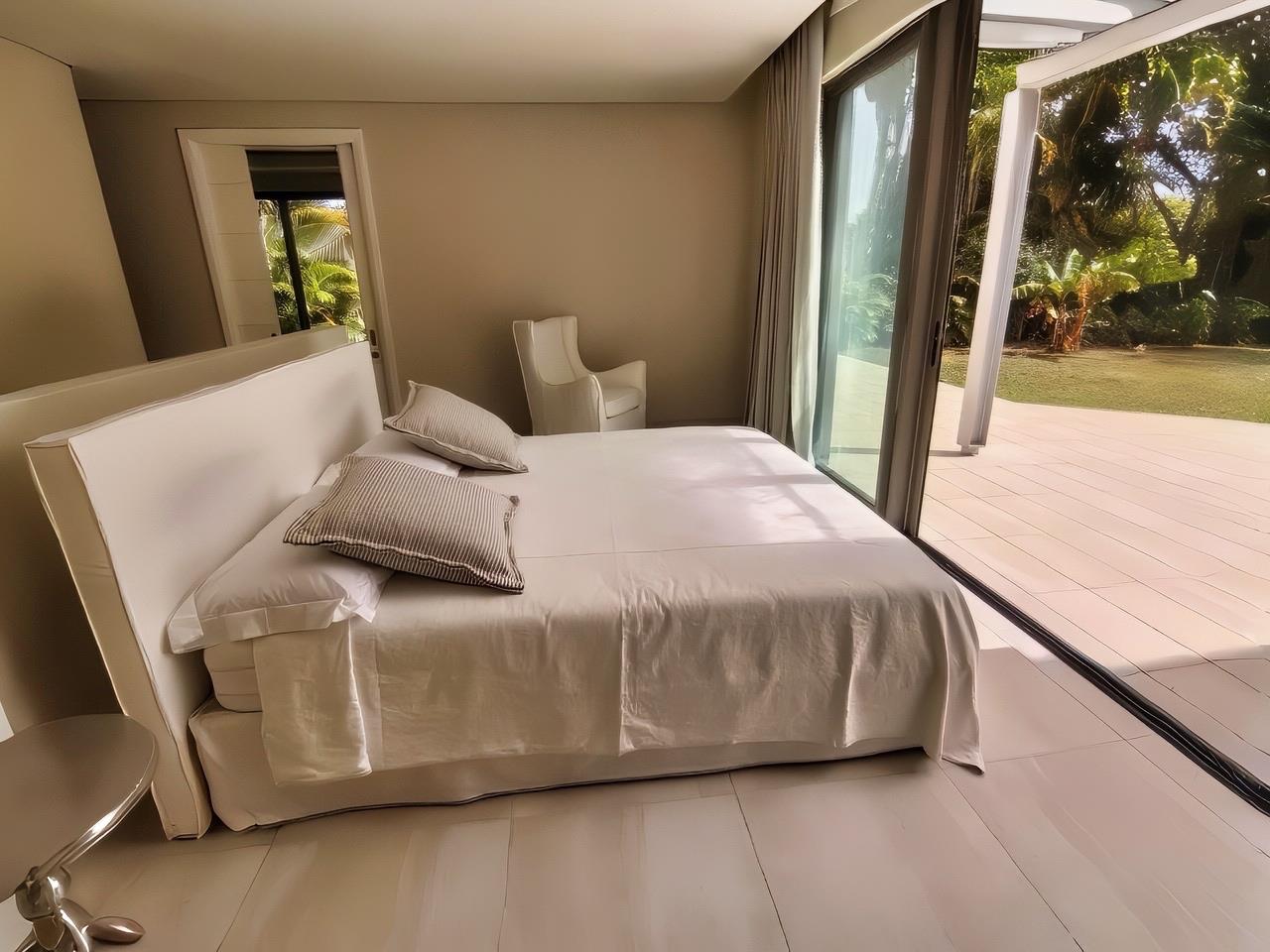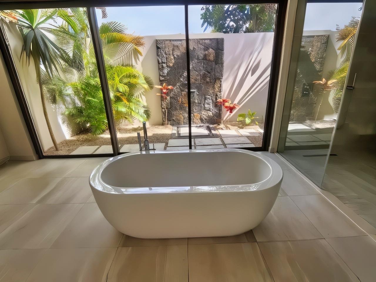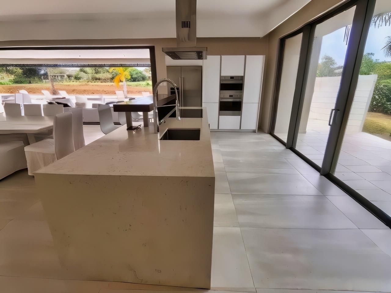 The villa's interiors have been meticulously crafted to create an atmosphere of refined elegance and effortless functionality. The expansive open-plan living area serves as the heart of the home, seamlessly integrating the living, dining, and kitchen spaces. Natural light floods the room, highlighting the exquisite finishes and creating a warm and inviting ambiance. The dining area provides ample space for formal gatherings, while the comfortable seating arrangements offer the perfect setting for relaxation. The kitchen is a culinary masterpiece, equipped with state-of-the-art SMEG appliances that cater to the most discerning chef. Sleek countertops, custom cabinetry, and ample storage space ensure a seamless cooking experience. Each of the four bedrooms is a private sanctuary, boasting its own ensuite bathroom. The bathrooms are adorned with luxurious fixtures, premium materials, and thoughtful design elements. Ample cupboard space throughout the villa ensures that storage is never an issue, while the separate scullery provides additional convenience. Air conditioning throughout the villa guarantees year-round comfort, allowing you to enjoy the Mauritian climate to its fullest.
