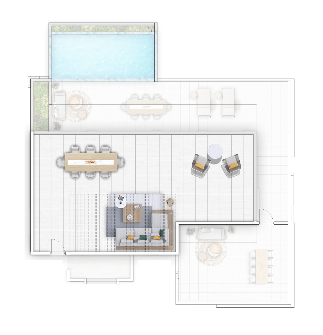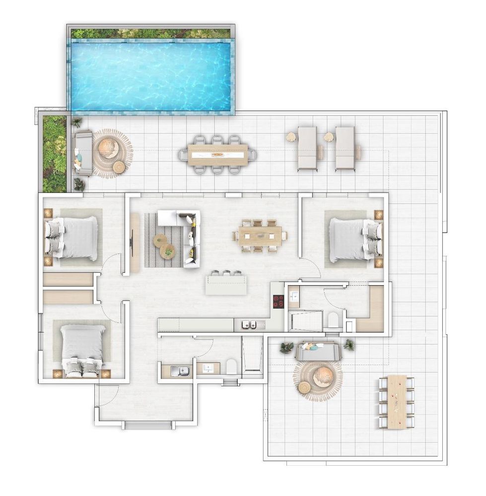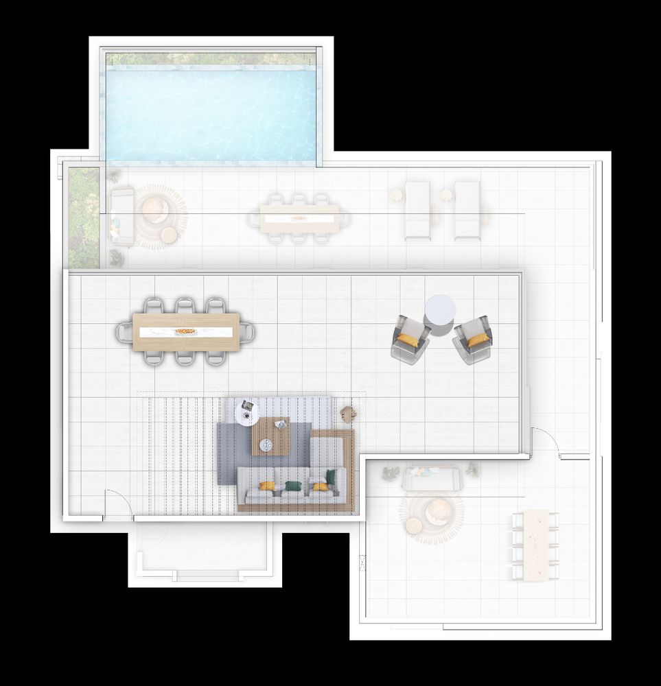 Ascend to your private 102m2 to 128m2 rooftop sanctuary, where entertaining reaches new heights. Picture sunset cocktails at your custom bar area beneath an elegant pergola, or starlit evenings relaxing in your optional jacuzzi while tropical breezes carry the scent of frangipani through the air.