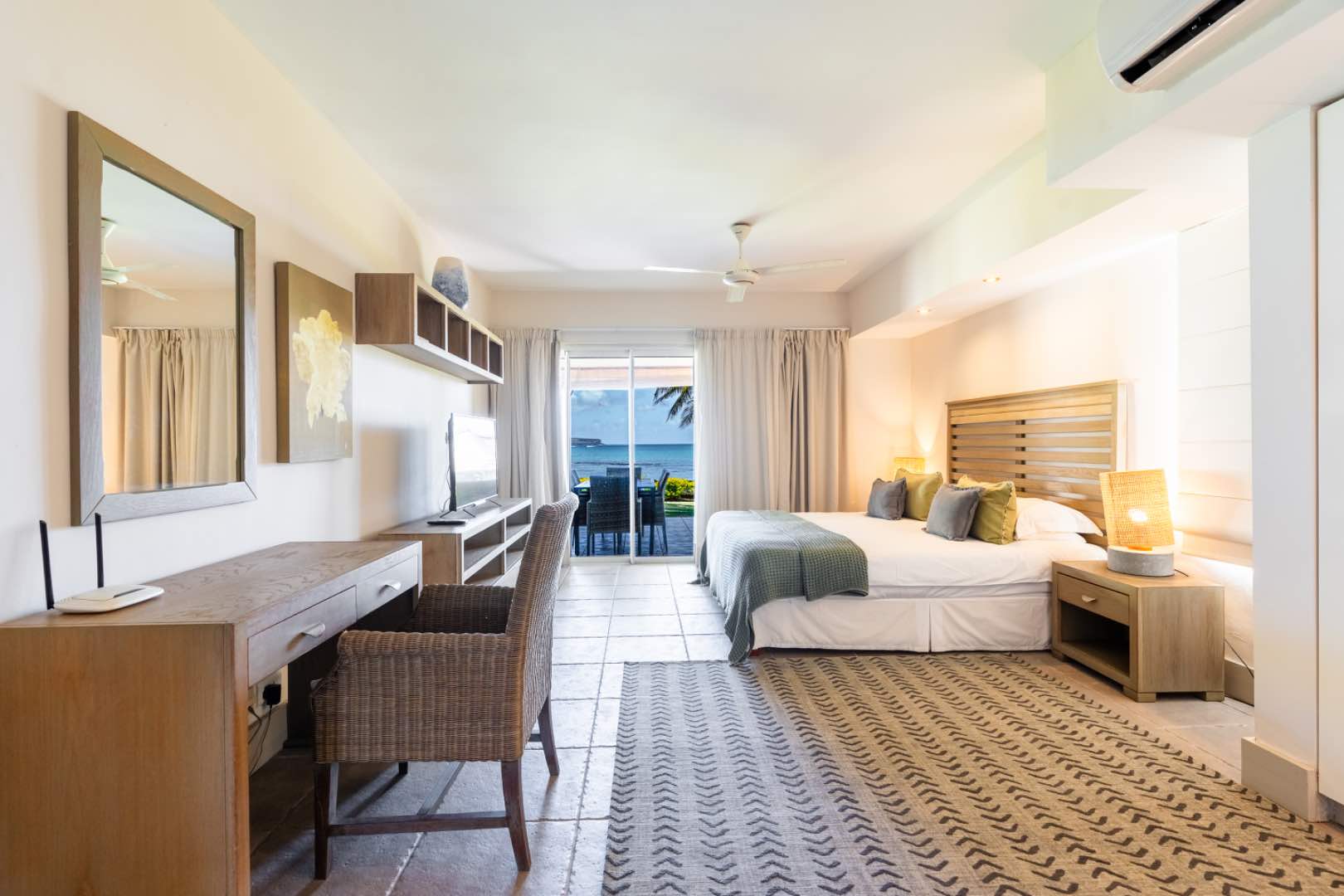 Step directly from your private terrace onto pristine Mauritian sand - this exceptional ground-floor apartment offers unparalleled ocean access that money simply cannot buy.