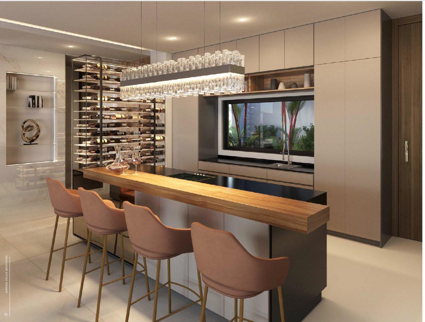 Your magnificent 58-190m2 private swimming pool anchors extensive outdoor entertaining areas complete with integrated barbecue and lounge spaces. The sophisticated wine cellar ensures every gathering is perfectly appointed, while panoramic canal views provide a stunning tropical backdrop.