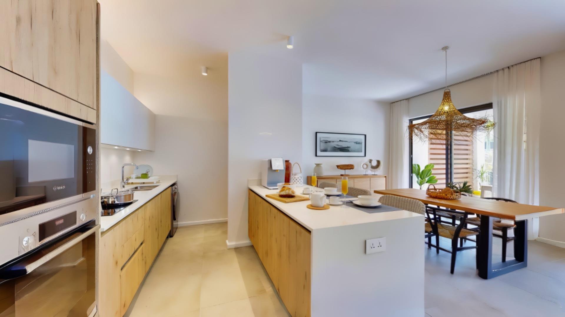 Interiors have been designed with a neutral, natural palette to reflect the island setting and to allow buyers to tailor furnishings easily. Standard finishes include quality ceramic or porcelain floor tiles, modern fitted kitchens with contemporary cabinetry and stone or composite worktops, built in wardrobes in bedrooms, and modern sanitaryware in bathrooms. Lighting and electrical layouts are preinstalled to international standards. For buyers seeking a turnkey solution, an optional deco pack is available that provides coordinated furniture, soft furnishings, window treatments and selected appliances, enabling immediate occupancy with minimal setup.