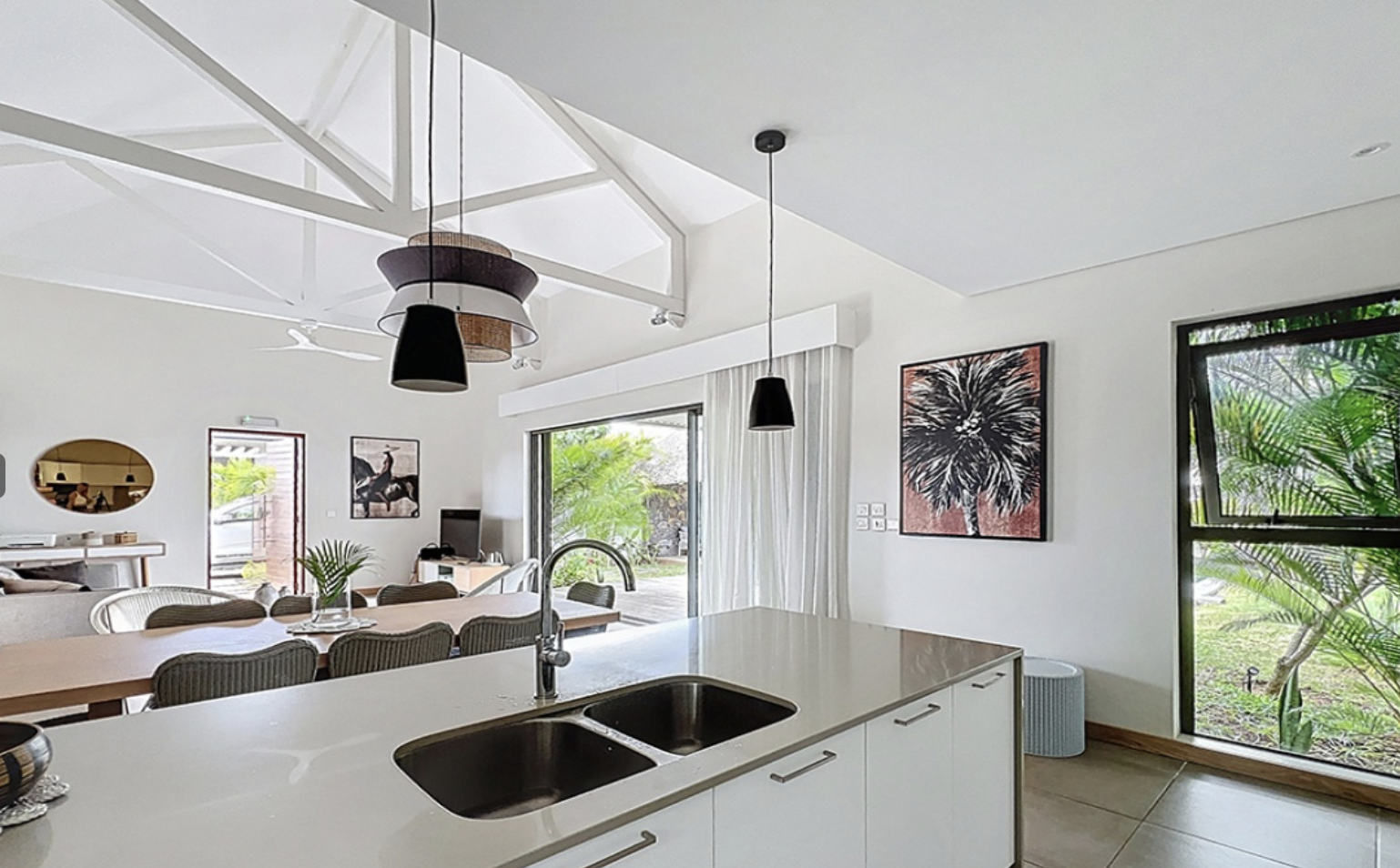 This stunning contemporary villa showcases meticulous attention to detail throughout its thoughtfully designed spaces. The heart of the home features an expansive open-plan kitchen flowing seamlessly into generous living areas, creating an ideal setting for both everyday living and sophisticated entertaining.