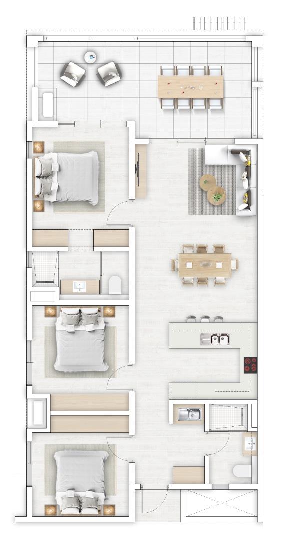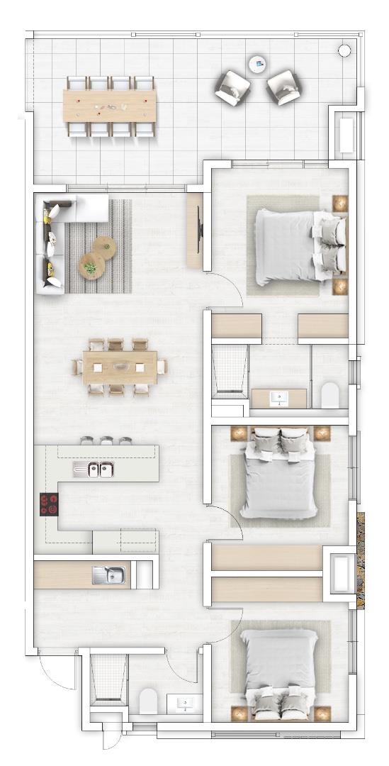 Discover a rare collection of just 12 exquisitely appointed three-bedroom apartments across two exclusive blocks, where contemporary comfort seamlessly blends with tropical sophistication. These aren't just apartments – they're your gateway to the ultimate island lifestyle experience.