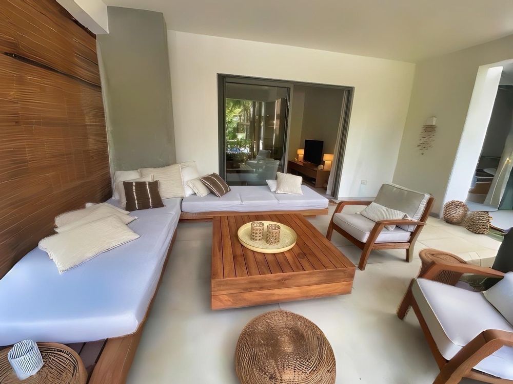 This GROUND FLOOR apartment boasts an interior living space of 160.57 m2, with a total area of 187.04 m2 including the covered terrace, plus a private garden. The residence features a modern open-plan living, dining, and kitchen area, creating a seamless flow for comfortable living and entertaining. The expansive, fully covered terrace overlooks one of the communal pools, extending the living space outdoors and providing easy access to the gardens. Fully furnished with tasteful, high-end décor, this move-in ready apartment offers a seamless transition to the luxurious Mont Choisy lifestyle. Fibre internet is already installed, ensuring high-speed connectivity.