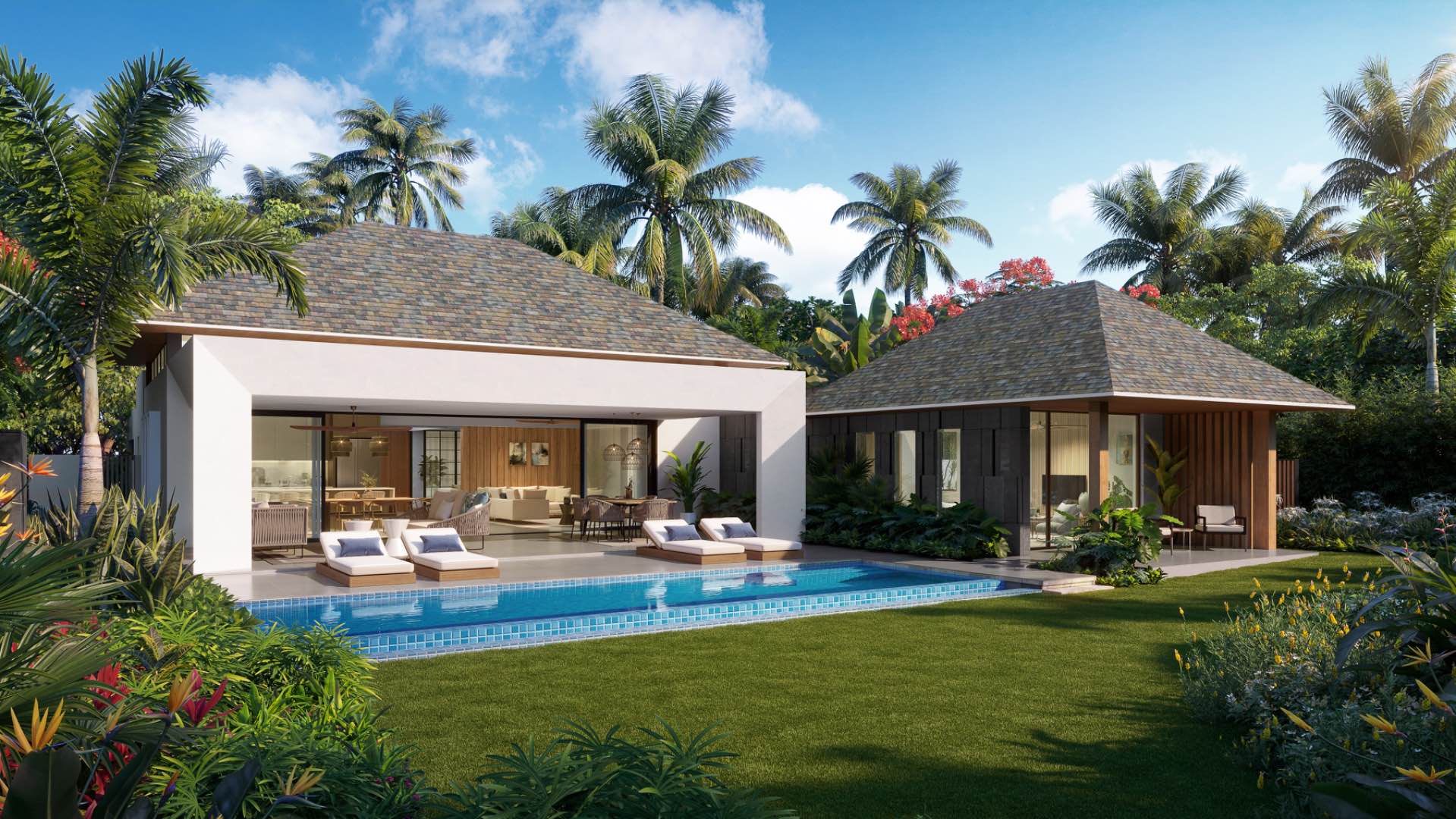 * Sparkling Private Pool and Expansive Deck: Escape the tropical heat and immerse yourself in the refreshing waters of your private pool, surrounded by an expansive deck perfect for sunbathing, lounging, and hosting unforgettable poolside gatherings.