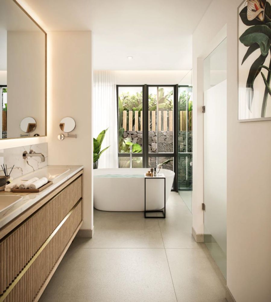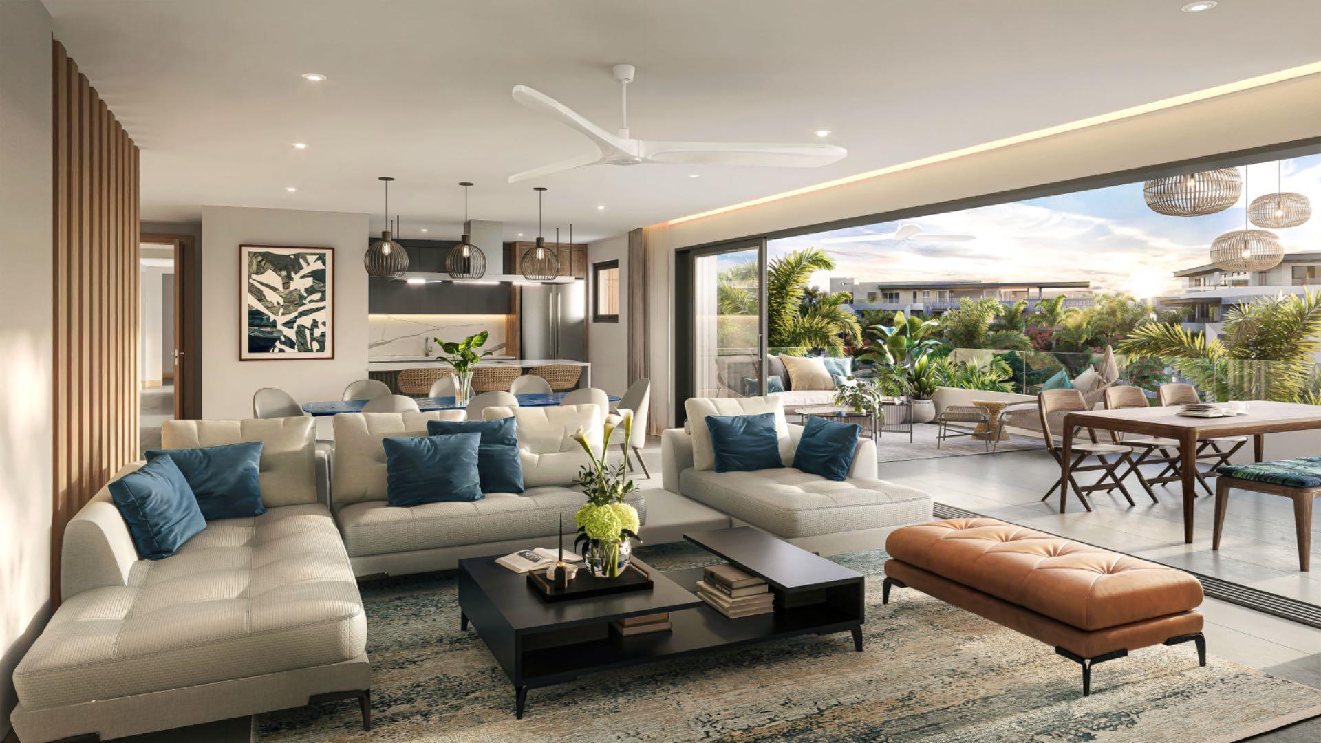 Penthouses crown the buildings of Mont Choisy La Reserve, offering panoramic views and generous terraces that extend the living space. The materials and wide openings blur the boundaries between indoors and out, creating a discreet, elevated lifestyle that balances privacy, ease, and a sense of place. Expansive private terraces provide the perfect setting for dawn coffees and sunset gatherings, while the framed views of the sea, fairway, or mountains offer a constant reminder of the beauty that surrounds you. Sheltering canopies, refined textures, and generous proportions compose an elegant, distinctly Mauritian outdoor room. Imagine waking up to the sound of birds chirping and the gentle sea breeze, stepping out onto your private terrace to witness a breathtaking sunrise, and spending your days immersed in the beauty and tranquility of Mont Choisy.