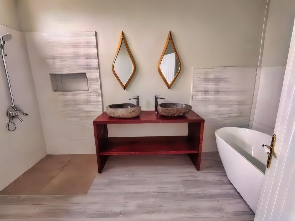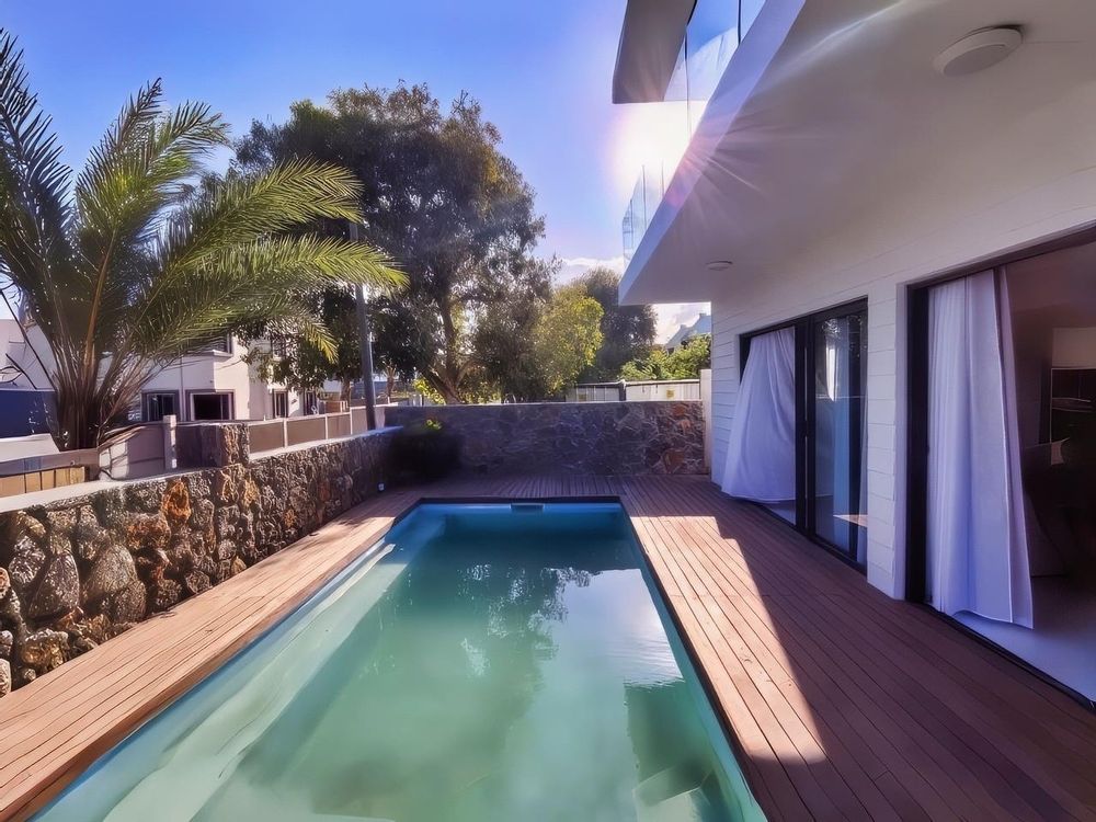 The outdoor area of this villa is designed for both security and indulgence. The property is secured by an electric gate and framed by a beautiful stone wall, ensuring privacy and peace of mind. The centrepiece of the garden is a lovely swimming pool, complemented by an inviting deck that provides ample space for sunbathing, relaxation, social gatherings, and even a barbecue. The open-plan lounge and dining room seamlessly connect to this outdoor deck, allowing for effortless indoor-outdoor living and providing a perfect vantage point to overlook the pool. This blend of indoor comfort and outdoor luxury creates an idyllic setting for making cherished memories.