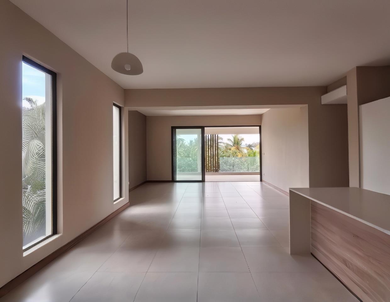 Le Savoy Residence offers an exclusive chance to experience first-floor luxury living like never before in the esteemed Pointe aux Canonniers area of Mauritius. This penthouse, unfurnished and untouched, invites those with vision and means to create a bespoke sanctuary suited to their exacting standards. With two opulent bedrooms and two stylish bathrooms, the residence provides a spacious 153m2 canvas awaiting your personal touch. The contemporary kitchen, with its sleek built-in cupboards, is ready to inspire culinary excellence, while air conditioning in the bedrooms ensures ultimate comfort.