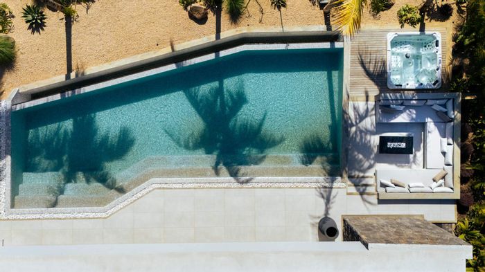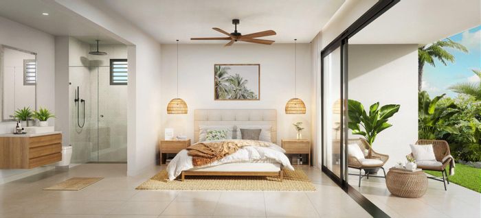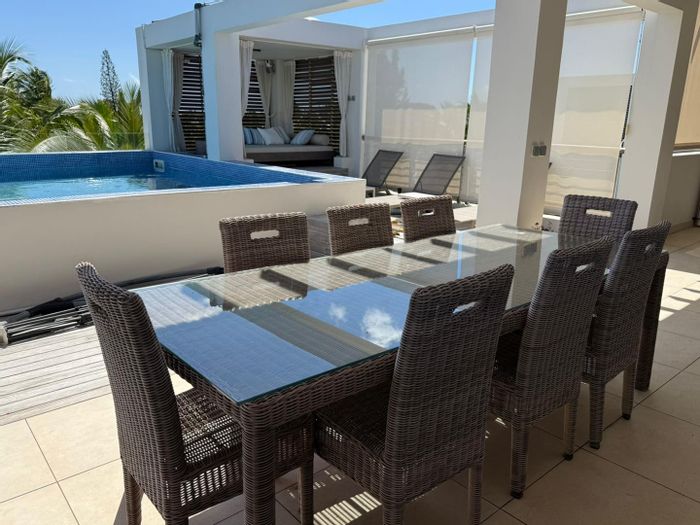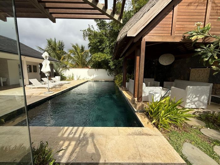 Embrace relaxed tropical living north of Mauritius, between Le Pouce and Pieter Both, minutes from Grand Baie. Private 6x3m slate-tiled pool, three ensuite bedrooms.