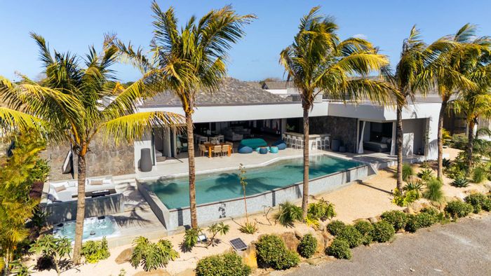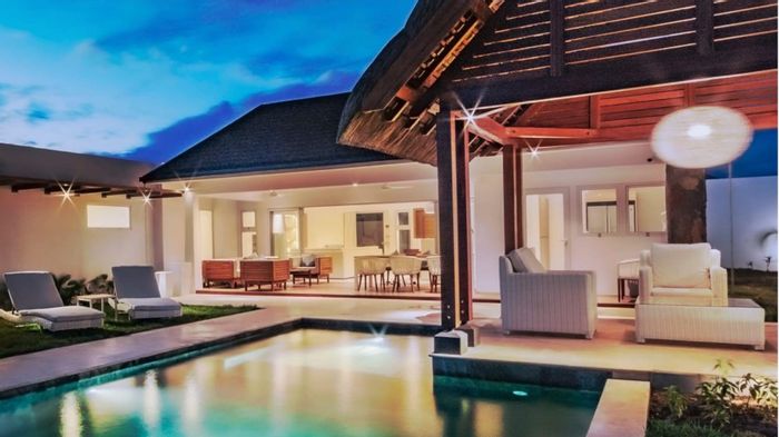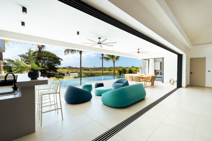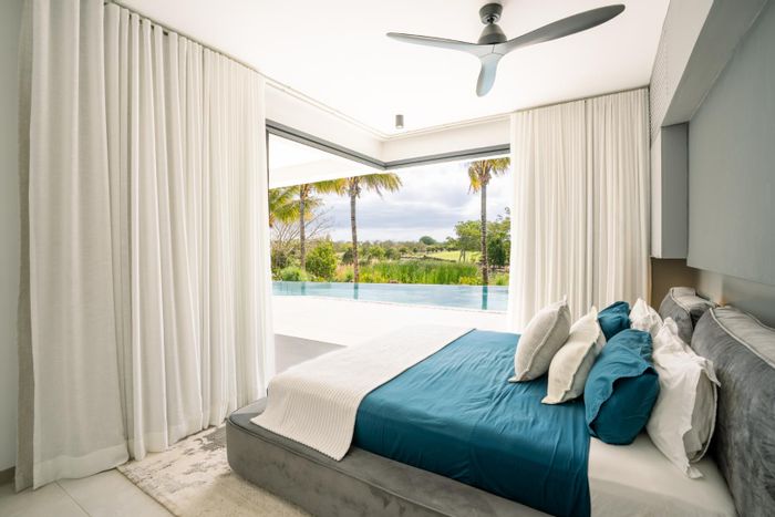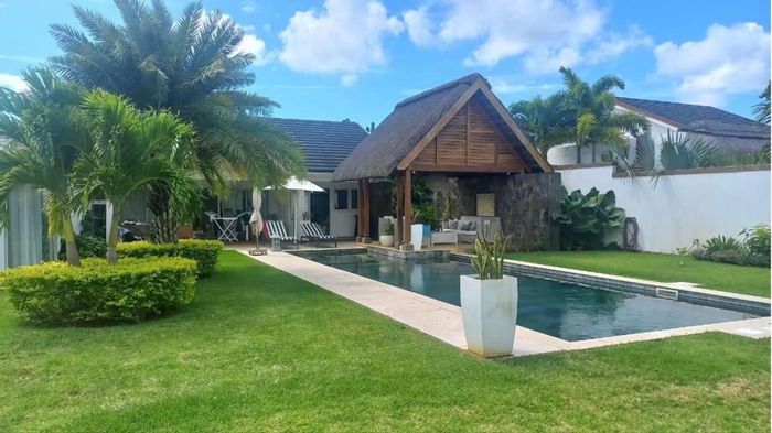 Resort-style living in Mont Choisy Golf Estate with walking-distance beach access and mall convenience; entertain on a 50 m² terrace with 14 x 5 m pool, jacuzzi and four en-suite bedrooms.