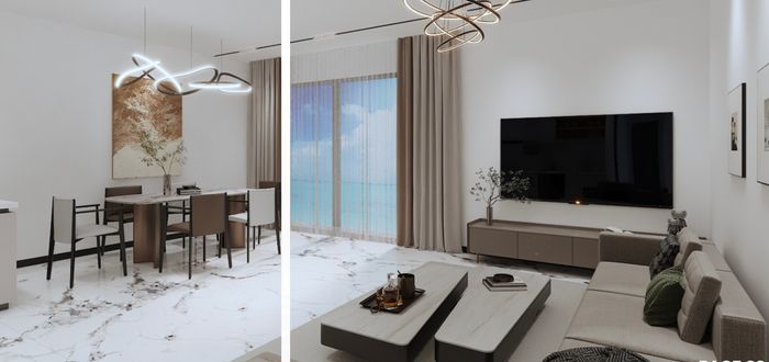 Designer-curated turnkey apartment on North Mauritius’ golden-white beach, first-floor privacy with sweeping Indian Ocean views; sold fully furnished — three bedrooms, three bathrooms, covered parking.
