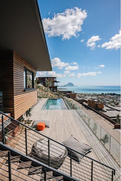 Experience private resort living on Mauritius' Black River coast with +180° lagoon and Le Morne views, 48m2 infinity pool, exclusive wine cellar, and five ensuite bedroom suites.