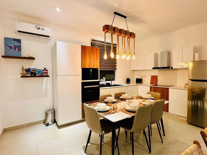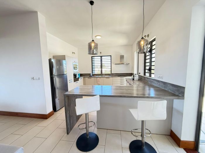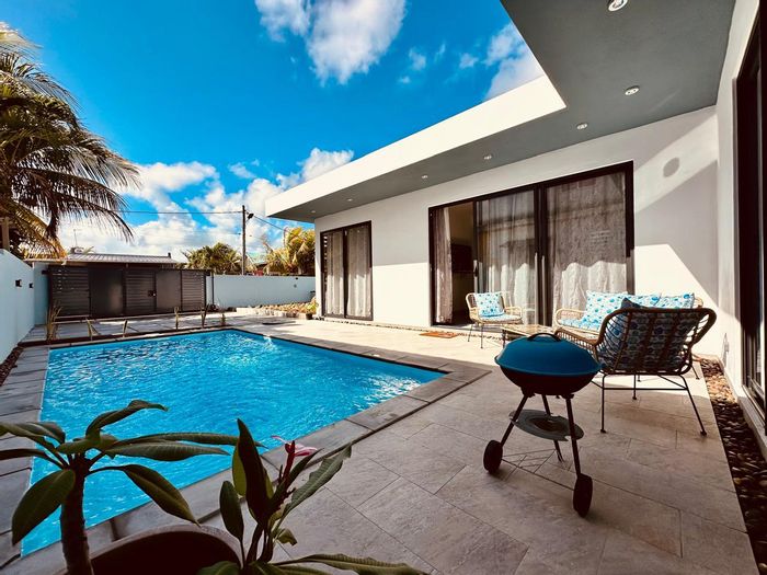 Peaceful island living in Cap Malheureux's Harmony development, north Mauritius, with a sunny veranda and private garden for outdoor dining; fully furnished, 3 beds, 3 baths.