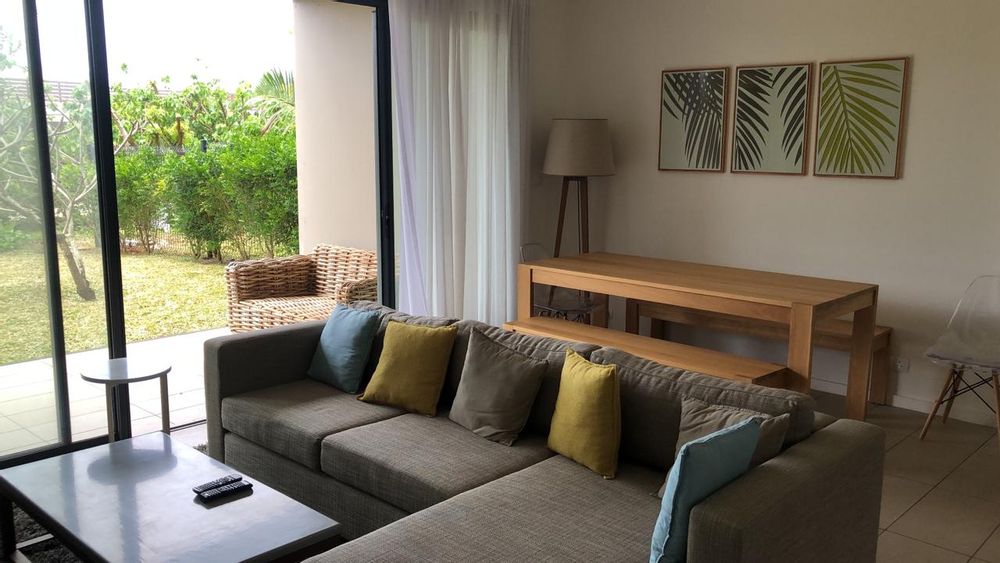 Discover this beautifully decorated modern apartment located on the ground floor of a secure, well-maintained residence in Roches Noires.