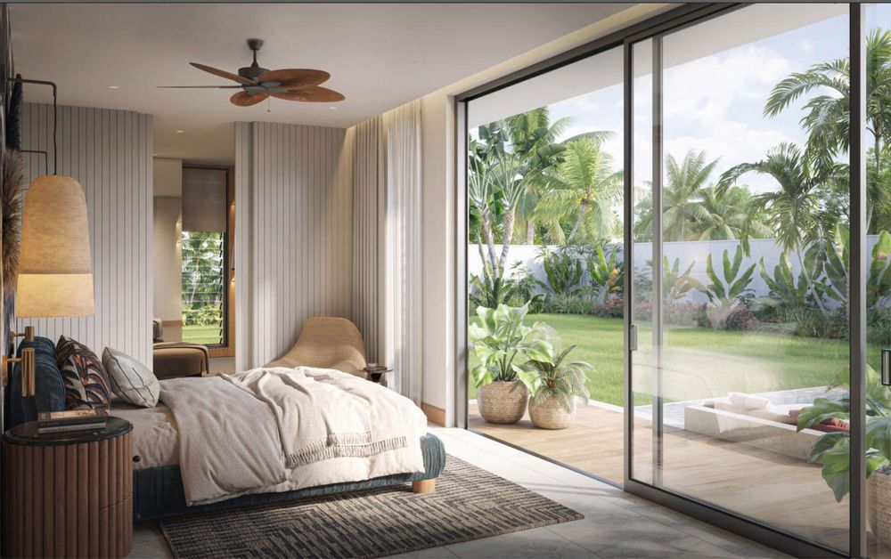 Each magnificent 4-bedroom villa spans approximately 600m2 across meticulously designed spaces, featuring contemporary architecture that harmonizes seamlessly with Mauritius' natural beauty. Floor-to-ceiling windows flood every room with tropical light, while premium materials and bespoke finishes create an atmosphere of refined sophistication throughout.